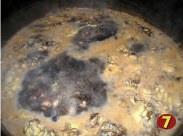 待虾丁变色后把发菜和泡发菜的水一起倒入锅内