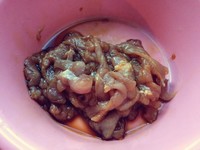 猪肉切成肉丝,用酱油和白胡椒粉腌制一段时间备用