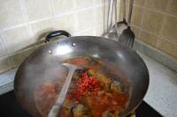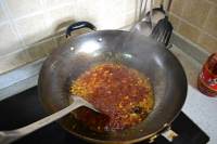 利用锅中剩余的油,放入姜蒜、八角、大料、豆瓣、剁椒爆香