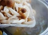 等鸡炖的用筷子能很轻松的戳进鸡肉里,把汤表面的沫子撇去,放入蟹味菇继续炖20-30分钟
