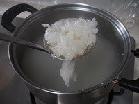 将洗净的银耳放入汤锅中,盖锅盖,大火煮滚后转文火,煮30分钟。