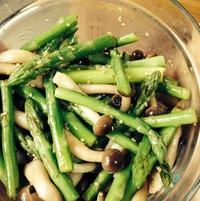 烧一锅水,放少许盐,滴一点油,水开后先把芦笋放下去焯,这样焯青菜能保持颜色翠绿,芦笋一两分钟就要捞起来,再放蟹味菇下去,个人认为蟹味菇可以多煮一会,因为我老怕他不熟。如果有凉开水芦笋捞起来后最好能过凉水,这样口感更脆,焯时间过长就不脆了,两样都焯好后把佐料都加进去拌匀,很爽口又健康。