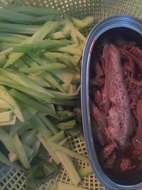 Tip:油要少,凤尾鱼罐头里的卤汁不要全用,太油腻。我就没注意这个,结果菜太油了。下次注意。