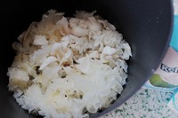 倒入椰子水,我买的一支500ml,先倒两支1000ml,是透明的椰子水,如果没有可以用椰树椰汁~味道也不错~
