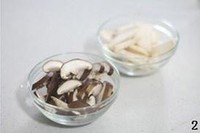 面团发酵的时候,准备其他材料。菌类洗净,香菇摘去菌柄切成片,杏鲍菇切成片