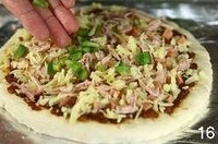 撒上火腿丁,并再撒一下马苏里拉芝士(约20克)