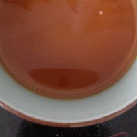 同时取一个小碗装半碗水,里面加生粉适量,醋少许,盐少许,白糖一小勺子,生抽适量,老抽少许搅拌成一碗汁备用