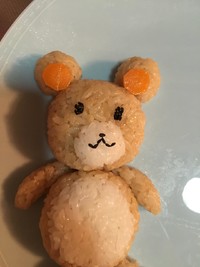 再用蚝油炒饭捏2个小圆,做出小熊的耳朵