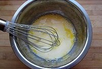 蛋黄加入糖粉,用蛋抽子搅打均匀