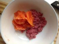Tip:Tips: ·第一次尝试水果和牛肉一起做辅食,选了味道比较甜、又含有软化肉质酶类的木瓜,凯恩非常喜欢。 ·平时蒸牛肉我会放些猪肥肉,不然吃起来很硬;这次牛肉里混合了菜和水果,口感也没那么“结实”,给宝宝吃也是不费力的。 ·盛传木瓜能丰胸,妈妈可能心里犯嘀咕了,给宝宝吃尤其是给女宝宝吃,会不会有什么不良反应呢? 木瓜确实是一种营养丰富的水果,首先它像我们熟悉的南瓜、胡萝卜一样,富含贝塔胡萝卜素,可在身体内转化成维生素A,对维持人体的正常视力、上皮组织细胞的健康以及免疫功能都有重要作用;它还含有木瓜蛋白酶(也叫木瓜酵素,顺便一提市场上火热的各种美容酵素,其实都是提取自天然的酶类,叫法一换就高大上了),这种蛋白酶能起到分解蛋白质的作用,市场上的嫩肉粉主要成分就是它,分解肉类的蛋白质后是肉变软变嫩。那么丰胸效果是如何产生的?乳房主要由肌肉组织、脂肪组织和乳腺组织构成,肌肉组织靠适当运动可以增强;脂肪组织靠多吃甜食、高热量食物也可以增加(但只增加胸部脂肪不太可能);最后乳腺组织的大小主要和雌激素有关。雌激素最主要受到遗传和年龄的影响,一般不会因某种食物而改变,而且木瓜最重要的两种营养素,都与雌激素不挨边呀!所以担心木瓜会令宝宝胸部过早发育的妈妈们,可以放心给宝宝食用这种营养丰富的水果。