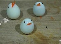 鹌鹑蛋煮熟后剥壳,在顶部切个小口,将小菱角胡萝卜片夹在切开的小口上做小鸟的嘴巴,用黑芝麻做小鸟的眼睛,将做好的小鸟放在面条中间的小窝上即可