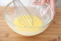 首先制作千层饼皮(配方的分量较多,因为容器的限制,一次性做这么大量不太好搅拌,所以分了两批来做,过程图所演示的是一半的分量)。鸡蛋在大碗里打散。