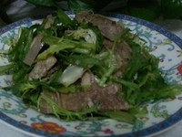 1.牛肉煮熟放凉(最好提前做好肉更有韧劲)切成薄片。 2.苦菊清洗干净空干水后切段。 3.牛肉片和苦菊放在盆中,依次放入蒜末、白糖、清醋、味精拌匀,最后再放入精盐拌均匀即可。