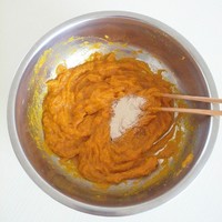 南瓜温度降下来加入适量的发酵粉