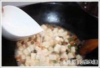 倒入胡椒粉和盐调味,调味的过程最好在此时完成不然容易将即将下锅的豆腐碰碎