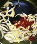 翻炒片刻,加入鸭肉,继续炒至鸭肉变色