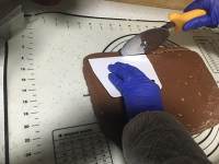 差不多成形后再次反扣台面的垫子上,连着油布一起把四周略微整理一下,当然,如果不想麻烦,此步骤可以省略