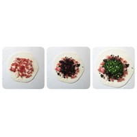 取一份面团压扁擀开,一层肉,一层梅干菜,一层葱花按这顺序。(看个人口味也可加入一些小虾皮)