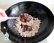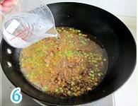 在锅中炒香蒜末,然后倒入肉末煸炒 ,将肉末炒散后,加入15ML料酒略炒