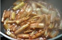 Tip:1、笋先用清水煮下,放点盐,方便入味 2、煮笋的水很鲜的,可以利用 3、这道菜油相对来说要多一点哈
