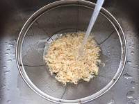 大火烧热锅,倒入虾皮快速翻炒,炒干水