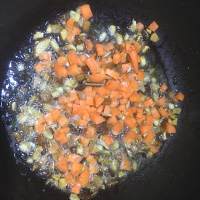 翻炒糯米和配料,让每粒糯米都变色,就可以起锅