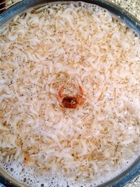 干虾皮用温水清洗干净(洗出一只小螃蟹^_^)