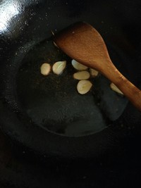 猪油烧热下蒜瓣(荠菜非常吃油,猪油可以多一些)。我是临时用五花肉切碎煸的猪油。蒜瓣爆香倒入控水后的荠菜翻炒。