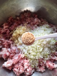Tip:葱姜切成细末加入肉馅
