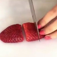 用双手扶着草莓片摆成孤形(看图)