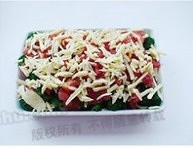 依次铺上洋葱,西兰花和西红柿