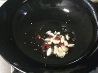 红辣椒切碎,蒜切片,热油下锅