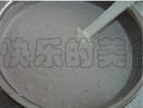 煮好的糖水一点一点缓慢地加入正在打发的蛋清中,边倒边继续打发,打至湿性发泡状态