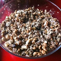 拌的过程中,加红糖、加蜂蜜、加油,一直到有点粘连就可以了。完全依据个人口味,喜欢甜的就多放点红糖,蜂蜜也是非常好的粘连桥梁