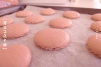 Tip:1)挤出小小的圆形后記得要把烤盤抬起幾公分在桌子上拍幾下,減少馬卡龍裡的氣泡。 2)然后,请把它放在一旁30分钟左右直至表面干燥,用手指触摸不会黏带。
