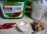 将豆瓣酱、干辣椒、盐、蒜和姜准备好
