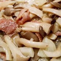 Tip:油锅下肉片以后不要马上翻动,因为有豆粉,过过油固定豆粉,肉嫩,也不会糊锅。蘑菇一定加少许水闷闷,吃熟