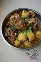 排骨、发好的滑子菇和切好的玉米放入高压锅