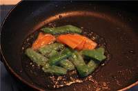 锅中放油,倒入洗净的荷兰豆和胡萝卜,翻炒片刻