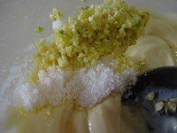 舀出3.5吃饭勺的沙拉酱,加3酸奶小勺那么多量的白糖,加入蒜泥,搅拌均匀。其实可以先少加点糖,拌完了尝尝,差不多就行,不行再加,随个人喜好