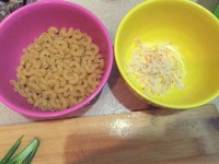 锅内滳点油,葱头切段热锅。放入红萝卜扁炒,在加入香菇,香菇吸油这样煮出来的就不会太油了。。逐步放入香肠。加2碗水。放虾米  水开放通心粉煮15分钟。调味起锅撒葱花。。。