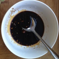 准备好调料,生抽(提鲜,杏鲍菇和生抽搭配,能使味道更鲜美)、老抽(也很重要,可使得菜的颜色非常诱人)、醋、料酒、糖、淀粉,调成照烧汁。如果没有那个勺子,可以按照那个比例就OK啦~