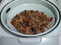 装进深碟,放进电饭锅的蒸格,开始煮饭
