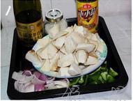 杏鲍菇清洗干净,滚刀切块,洋葱和青椒分别切块