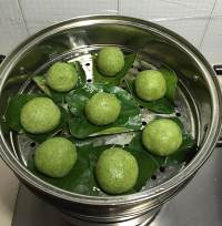 青团表面刷层油,蒸锅水开后,上蒸笼蒸10分钟。