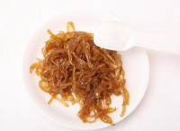 取出泡过的柚子皮,切成大小适中的细丝。