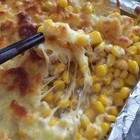 1.玉米粒用小火黄油炒干水分 2.关火后趁热度倒入一大勺沙拉酱调味 3.将玉米粒倒入烤盘中均匀的撒上芝士碎 4烤箱无需预热200度10分钟