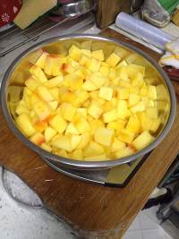 去核,切成自己喜欢的形状。(这个是用来方便做蛋糕的所以切成了小块。)