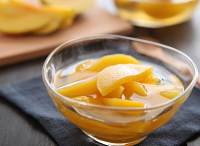 冷却好的黄桃罐头放入玻璃瓶中,放至冰箱冷藏,五天内吃完。