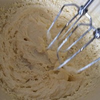 黄油室温软化(用手可轻易按个坑,不要隔热水化成液体)。 加入白砂糖,打发至发白,体积膨大。